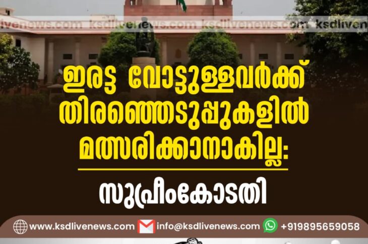 Uncategorized ഇരട്ട വോട്ടുള്ളവര്ക്ക് തിരഞ്ഞെടുപ്പുകളില് മത്സരിക്കാനാകില്ല -സുപ്രീം കോടതിSeptember 27, 2025