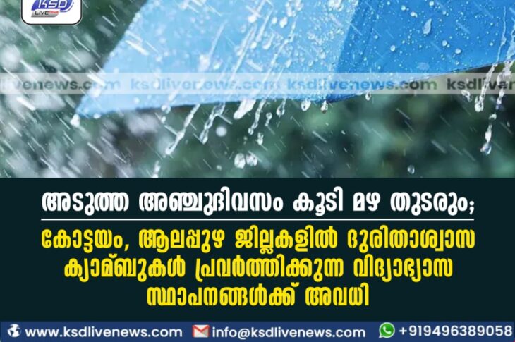 Uncategorized അടുത്ത അഞ്ചുദിവസം കൂടി മഴ തുടരും; കോട്ടയം, ആലപ്പുഴ ജില്ലകളില് ദുരിതാശ്വാസ ക്യാമ്ബുകള് പ്രവര്ത്തിക്കുന്ന വിദ്യാഭ്യാസ സ്ഥാപനങ്ങള്ക്ക് അവധിOctober 3, 2023