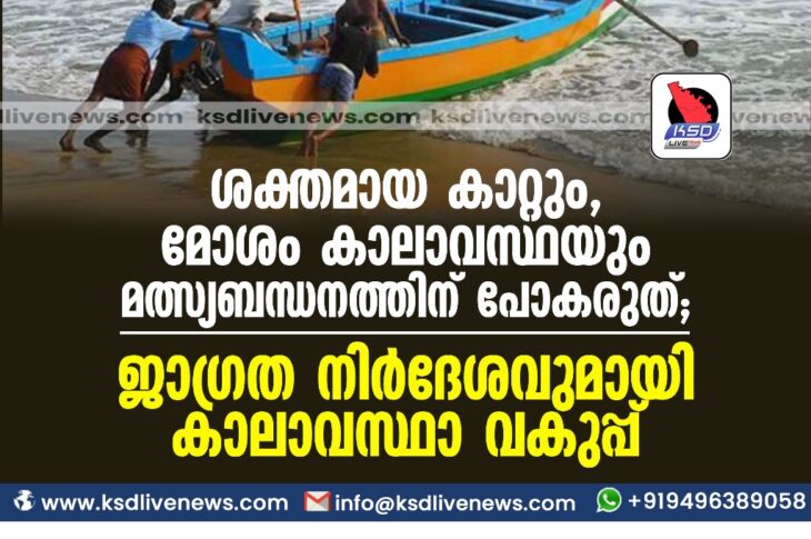 Uncategorized ശക്തമായ കാറ്റും, മോശം കാലാവസ്ഥയും മത്സ്യബന്ധനത്തിന് പോകരുത്; ജാഗ്രത നിര്ദേശവുമായി കാലാവസ്ഥാ വകുപ്പ്August 17, 2023