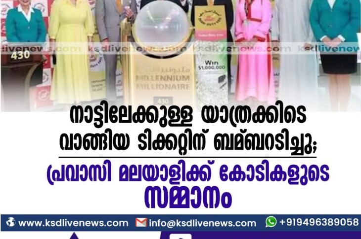 Uncategorized നാട്ടിലേക്കുള്ള യാത്രക്കിടെ വാങ്ങിയ ടിക്കറ്റിന് ‘ബമ്ബറടിച്ചു’; പ്രവാസി മലയാളിക്ക് കോടികളുടെ സമ്മാനംAugust 3, 2023
