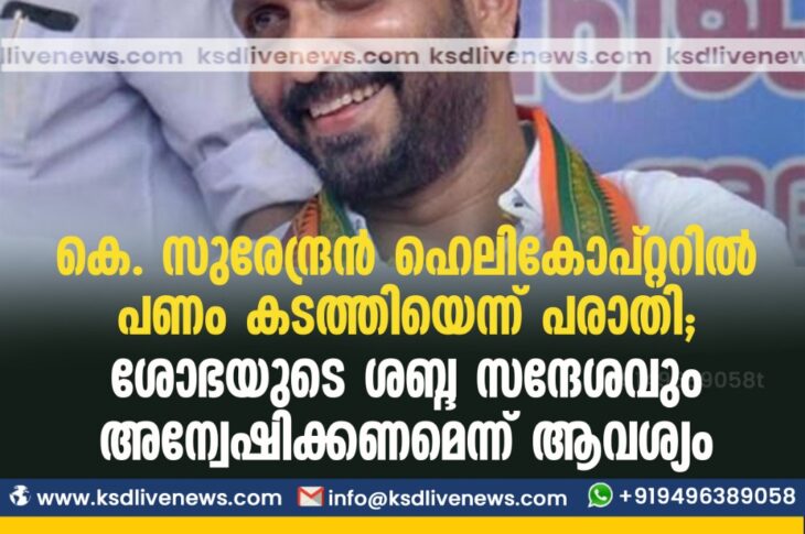 കേരളം കെ. സുരേന്ദ്രന് ഹെലികോപ്റ്ററില് പണം കടത്തിയെന്ന് പരാതി; ശോഭയുടെ ശബ്ദ സന്ദേശവും അന്വേഷിക്കണമെന്ന് ആവശ്യംMay 29, 2021