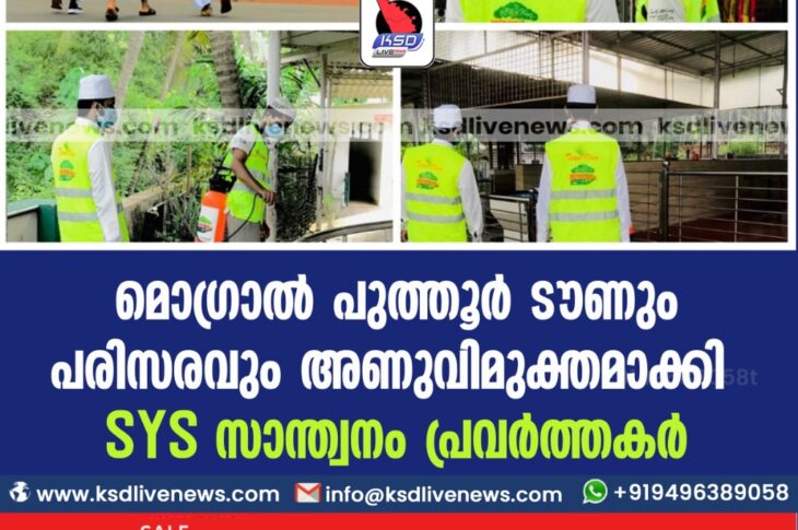 മൊഗ്രാൽ പുത്തൂർ ടൗണും പരിസരവും അണുവിമുക്തമാക്കി SYS സാന്ത്വനം പ്രവർത്തകർ