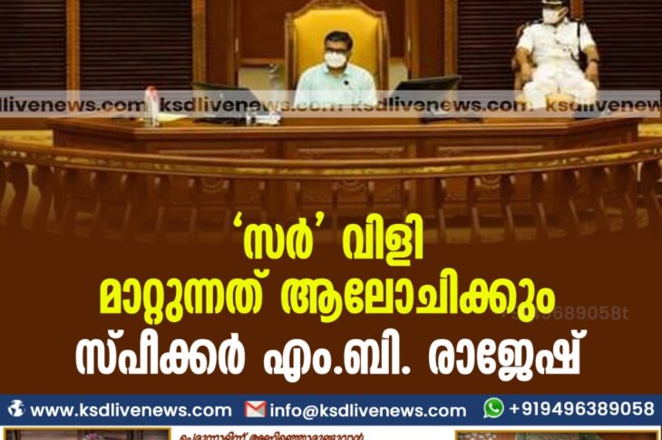 ‘സർ’ വിളി മാറ്റുന്നത് ആലോചിക്കും –സ്പീക്കർ എം.ബി. രാജേഷ്