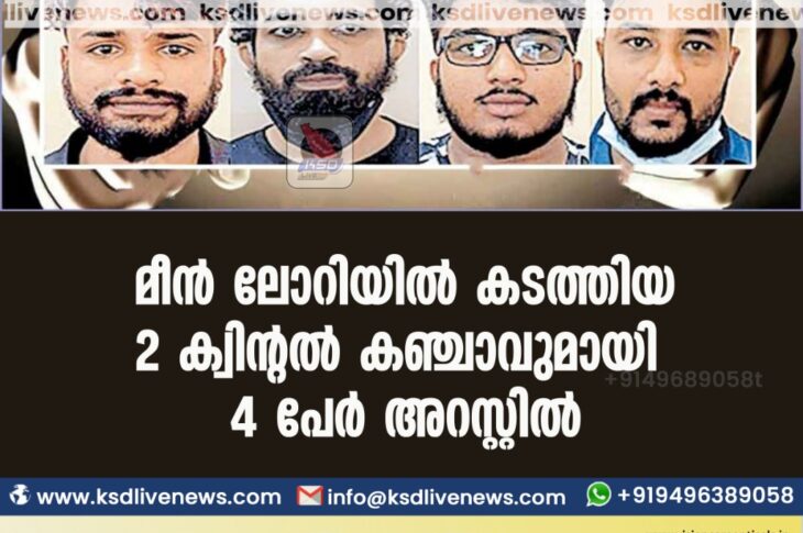 മീൻ ലോറിയിൽ കടത്തിയ 2 ക്വിന്റൽ കഞ്ചാവുമായി 4 പേർ അറസ്റ്റിൽ