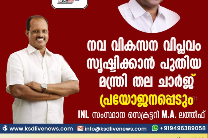 കാസർഗോഡ് നവ വികസന വിപ്ലവം സൃഷ്ടിക്കാൻ പുതിയ മന്ത്രി തല ചാർജ് പ്രയോജനപ്പെടും INL സംസ്ഥാന സെക്രട്ടറി M. A. ലത്തീഫ്May 26, 2021