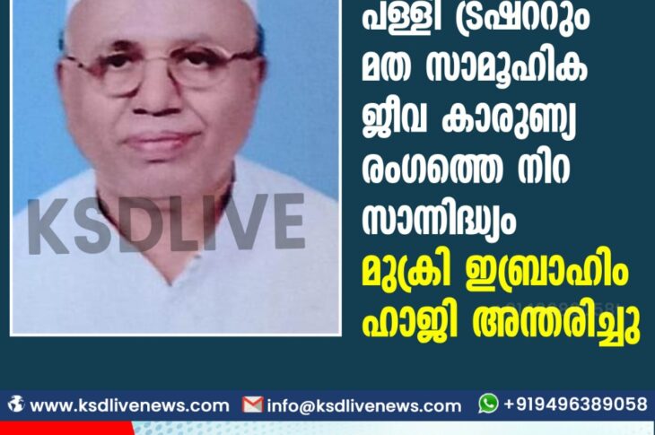 കാസർഗോഡ് മാലിക് ദീനാർ പള്ളി ട്രഷററും മത സാമൂഹിക ജീവ കാരുണ്യ രംഗത്തെ നിറ സാന്നിദ്ധ്യം മുക്രി ഇബ്രാഹിം ഹാജി അന്തരിച്ചുMay 24, 2021