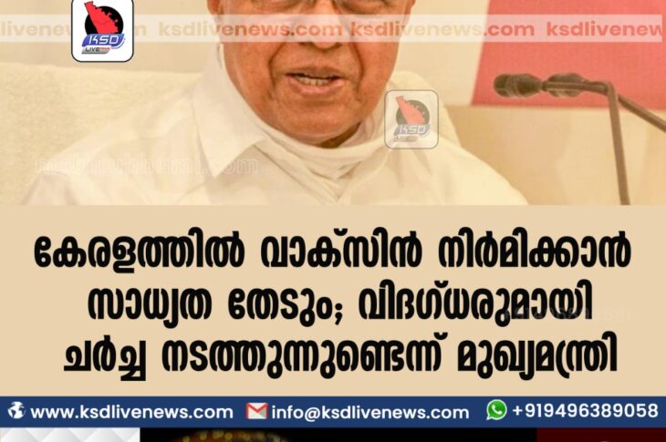 കേരളം കേരളത്തിൽ വാക്സിന് നിർമിക്കാൻ സാധ്യത തേടും; വിദഗ്ധരുമായി ചര്ച്ച നടത്തുന്നുണ്ടെന്ന് മുഖ്യമന്ത്രിMay 21, 2021