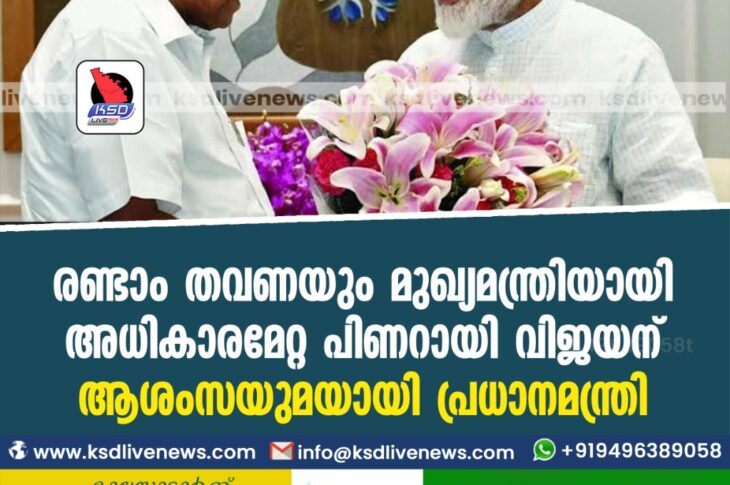 ദേശീയം രണ്ടാം തവണയും മുഖ്യമന്ത്രിയായി അധികാരമേറ്റ പിണറായി വിജയന് ആശംസയുമയായി പ്രധാനമന്ത്രിMay 20, 2021