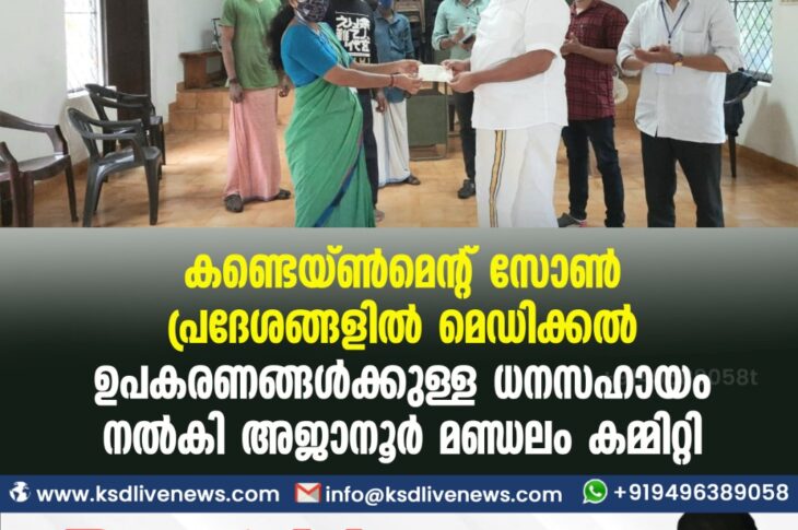 കാസർഗോഡ് കൺഡെയ്ൻ്റ്മെൻ്റ് സോൺ പ്രദേശങ്ങളിൽ മെഡിക്കൽ ഉപകരണങ്ങൾക്കുള്ള ധനസഹായം നൽകി അജാനൂർ മണ്ഡലം കമ്മിറ്റിMay 19, 2021