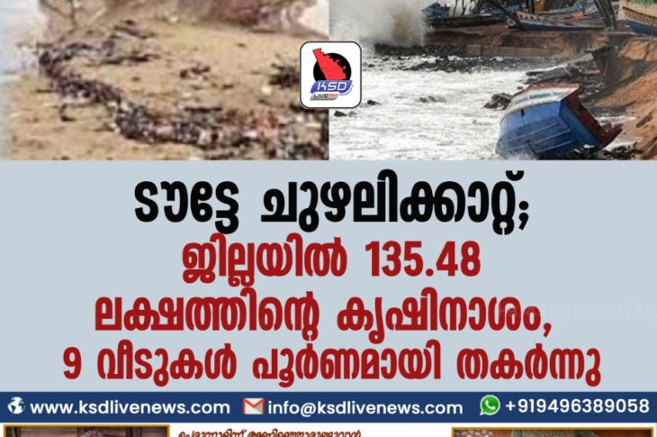 കേരളം ടൗട്ടേ ചുഴലിക്കാറ്റ്: ജില്ലയിൽ 135.48 ലക്ഷത്തിന്റെ കൃഷിനാശം,9 വീടുകൾ പൂർണമായി തകർന്നുMay 17, 2021