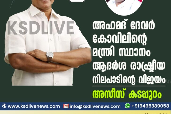 കാസർഗോഡ് അഹമദ് ദേവർ കോവിലിന്റെമന്ത്രി സ്ഥാനം ആദർശ രാഷ്ട്രീയ നിലപാടിന്റെ വിജയം അസീസ് കടപ്പുറംMay 17, 2021