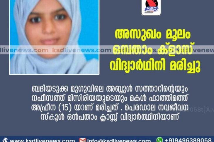 അസുഖം മൂലം ഒമ്പതാം ക്ളാസ് വിദ്യാർഥിനി മരിച്ചു