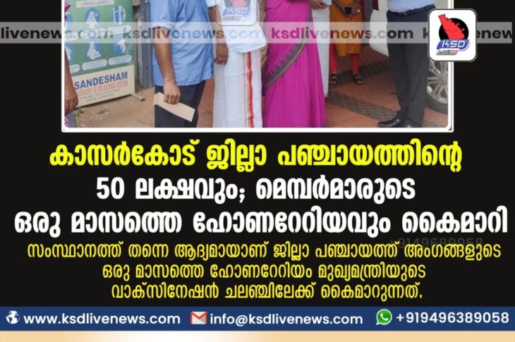 കാസർഗോഡ് കാസര്കോട് ജില്ലാ പഞ്ചായത്തിന്റെ 50 ലക്ഷവും മെമ്പര്മാരുടെ ഒരു മാസത്തെ ഹോണറേറിയവും കൈമാറിMay 10, 2021