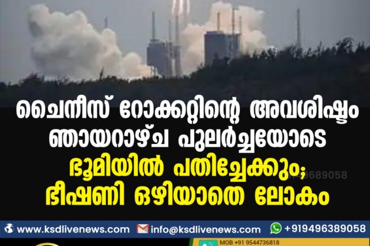 വിദേശം ചൈനീസ് റോക്കറ്റിന്റെ അവശിഷ്ടം ഞായറാഴ്ച പുലര്ച്ചയോടെ ഭൂമിയില് പതിച്ചേക്കും; ഭീഷണി ഒഴിയാതെ ലോകംMay 8, 2021