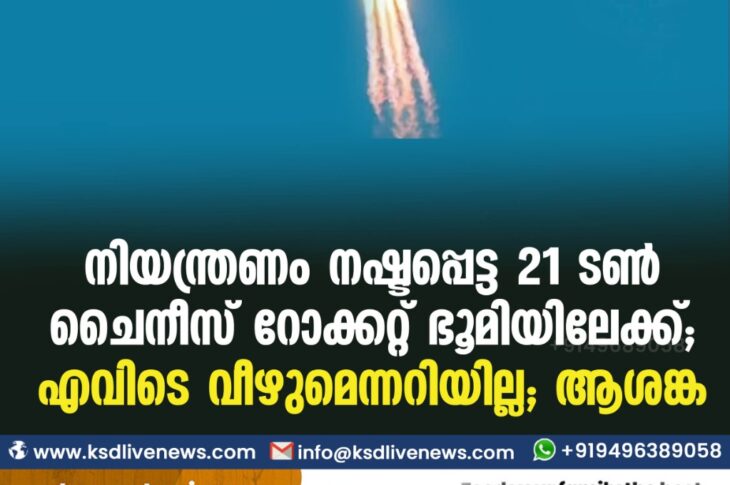 വിദേശം നിയന്ത്രണം നഷ്ടപ്പെട്ട 21 ടണ് ചൈനീസ് റോക്കറ്റ് ഭൂമിയിലേക്ക്; എവിടെ വീഴുമെന്നറിയില്ല; ആശങ്കMay 6, 2021