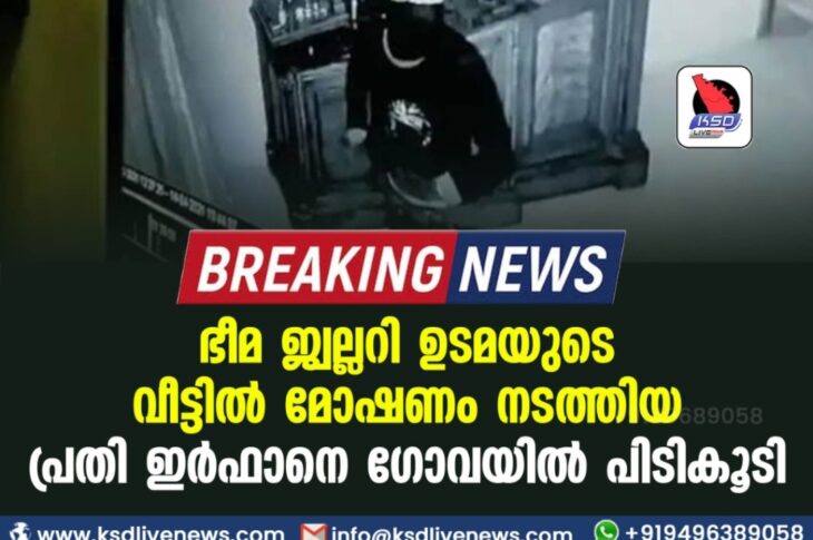 കേരളം ഭീമ ജ്വല്ലറി ഉടമയുടെ തിരുവനന്തപുരത്തെ വീട്ടിൽ മോഷണം നടത്തിയ പ്രതി ഇർഫാനെ ഗോവയിൽ പിടികൂടിMay 6, 2021