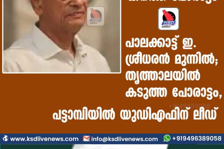 കേരളം പാലക്കാട്ട് ഇ. ശ്രീധരന് മുന്നില്; തൃത്താലയില് കടുത്ത പോരാട്ടം, പട്ടാമ്പിയില് യുഡിഎഫിന് ലീഡ്May 2, 2021