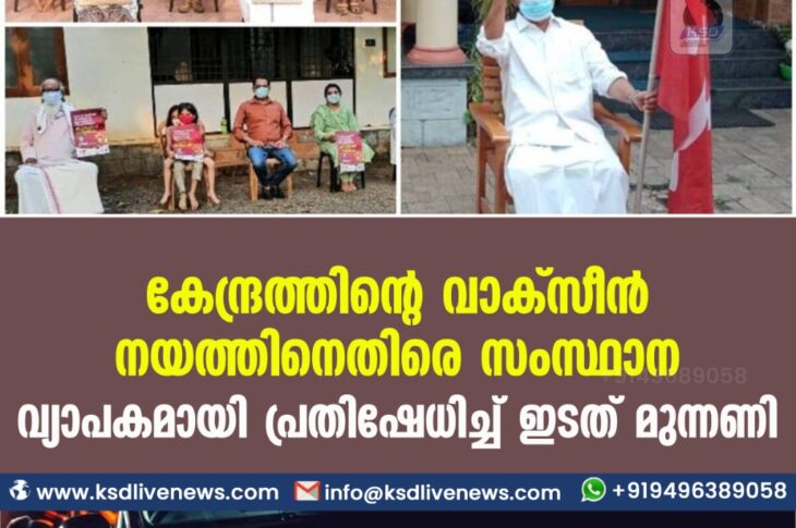കേരളം കേന്ദ്രത്തിന്റെ വാക്സീന് നയത്തിനെതിരെ സംസ്ഥാന വ്യാപകമായി പ്രതിഷേധിച്ച് ഇടത് മുന്നണിApril 28, 2021
