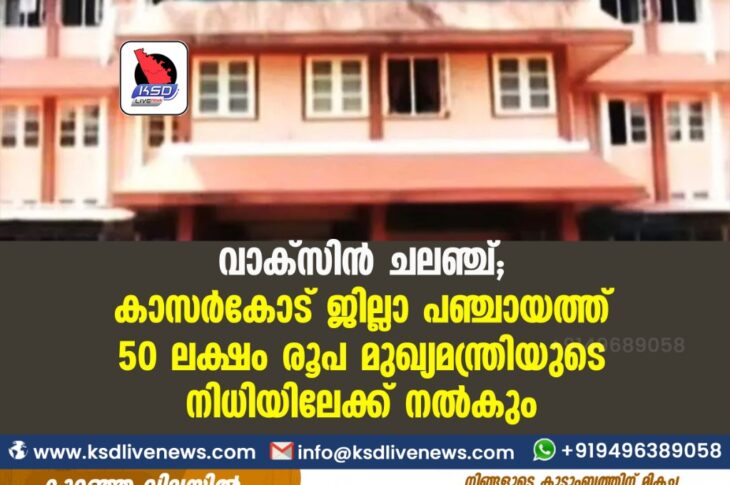 കാസർഗോഡ് വാക്സിന് ചലഞ്ച്; കാസര്കോട് ജില്ലാ പഞ്ചായത്ത് 50 ലക്ഷം രൂപ മുഖ്യമന്ത്രിയുടെ ദുരിതാശ്വാസ നിധിയിലേക്ക് നല്കുംApril 28, 2021