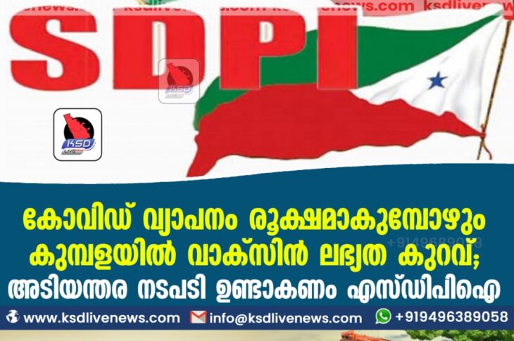 കാസർഗോഡ് കോവിഡ് വ്യാപനം രൂക്ഷമാകുമ്പോഴും കുമ്പളയിൽ വാക്സിൻ ലഭ്യത കുറവ് : അടിയന്തര നടപടി ഉണ്ടാകണം എസ്ഡിപിഐApril 27, 2021