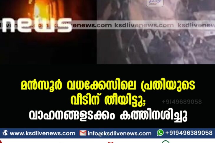 മന്സൂര് വധക്കേസിലെ പ്രതിയുടെ വീടിന് തീയിട്ടു; വാഹനങ്ങളടക്കം കത്തിനശിച്ചു