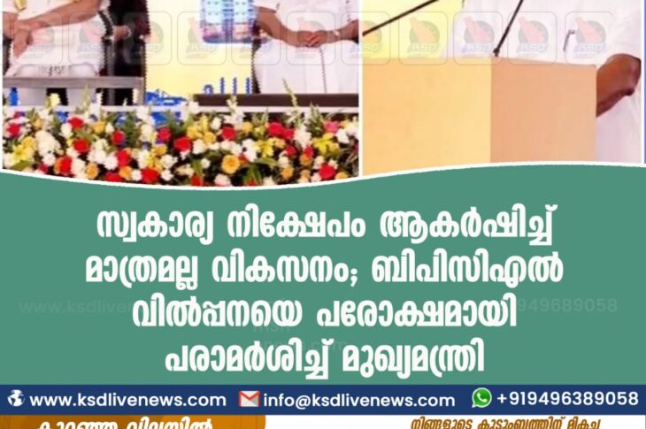 കേരളം സ്വകാര്യ നിക്ഷേപം ആകര്ഷിച്ച് മാത്രമല്ല വികസനം; ബിപിസിഎല് വില്പ്പനയെ പരോക്ഷമായി പരാമര്ശിച്ച് മുഖ്യമന്ത്രിFebruary 14, 2021