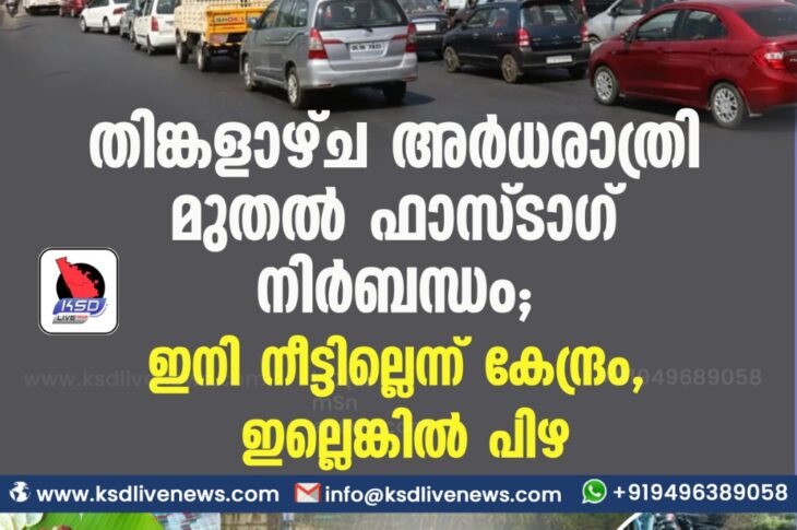 ദേശീയം തിങ്കളാഴ്ച അര്ധരാത്രി മുതല് ഫാസ്ടാഗ് നിര്ബന്ധം; ഇനി നീട്ടില്ലെന്ന് കേന്ദ്രം, ഇല്ലെങ്കില് പിഴFebruary 14, 2021