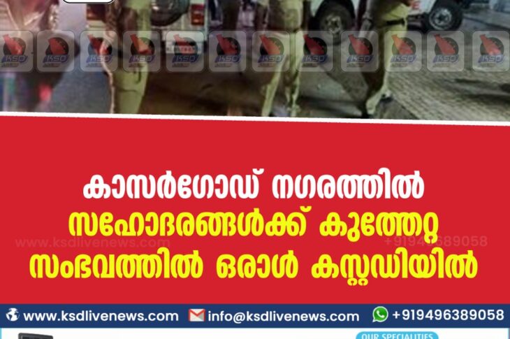 കാസർഗോഡ് നഗരത്തിൽ സഹോദരങ്ങള്ക്ക് കുത്തേറ്റ സംഭവത്തില് ഒരാള് കസ്റ്റഡിയില്