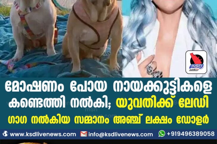 വിദേശം മോഷണം പോയ നായക്കുട്ടികളെ കണ്ടെത്തി നൽകി ; യുവതിക്ക് ലേഡി ഗാഗ നൽകിയ സമ്മാനം അഞ്ച ലക്ഷം ഡോളർMarch 1, 2021
