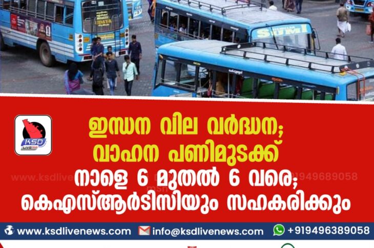 ഇന്ധന വില വർദ്ധന; വാഹന പണിമുടക്ക് നാളെ 6 മുതൽ 6 വരെ; കെഎസ്ആർടിസിയും സഹകരിക്കും