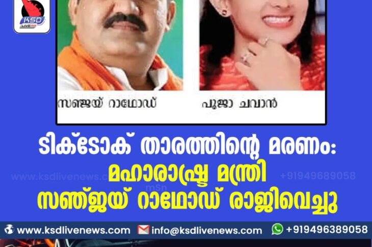 ടിക്ടോക് താരത്തിന്റെ മരണം : മഹാരാഷ്ട്ര മന്ത്രി സഞ്ജയ് റാഥോഡ് രാജിവെച്ചു