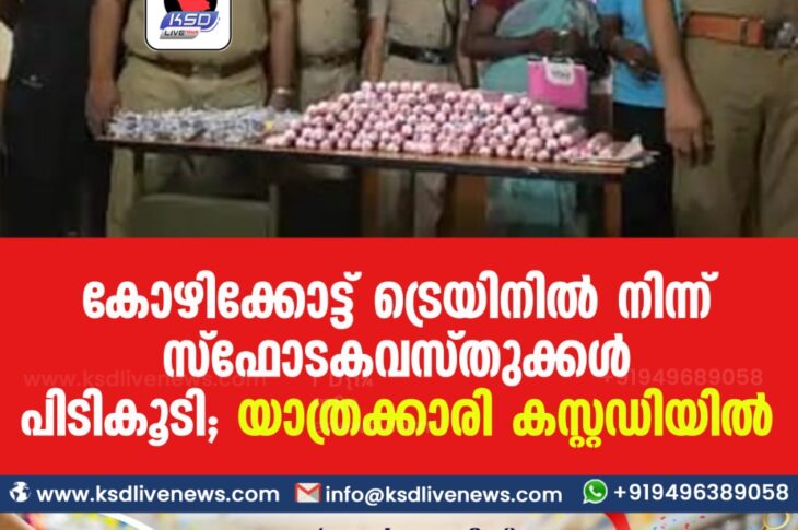 കേരളം കോഴിക്കോട്ട് ട്രെയിനില്നിന്ന് സ്ഫോടകവസ്തുക്കള് പിടികൂടി; യാത്രക്കാരി കസ്റ്റഡിയില്February 26, 2021