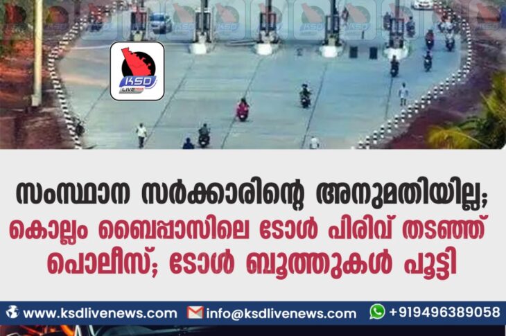 കേരളം സംസ്ഥാന സർക്കാരിന്റെ അനുമതിയില്ല ; കൊല്ലം ബൈപ്പാസിലെ ടോൾ പിരിവ് തടഞ്ഞ് പൊലീസ് ; ടോൾ ബൂത്തുകൾ പൂട്ടിFebruary 26, 2021