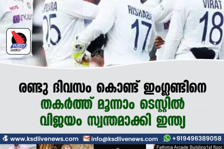 കായികം രണ്ടു ദിവസം കൊണ്ട് ഇംഗ്ലണ്ടിനെ തകര്ത്ത് മൂന്നാം ടെസ്റ്റില് വിജയം സ്വന്തമാക്കി ഇന്ത്യFebruary 25, 2021