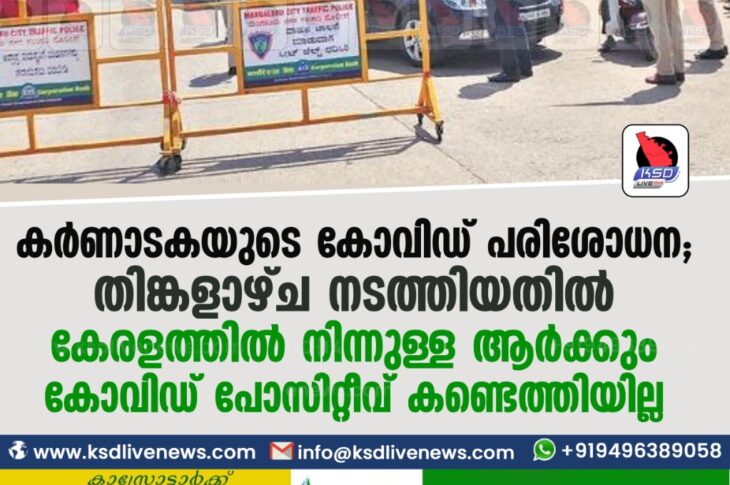 കാസർഗോഡ് കർണാടകയുടെ കോവിഡ് പരിശോധന; തിങ്കളാഴ്ച നടത്തിയതിൽ കേരളത്തിൽ നിന്നുള്ള ആർക്കും കോവിഡ് പോസിറ്റീവ് കണ്ടെത്തിയില്ലFebruary 24, 2021
