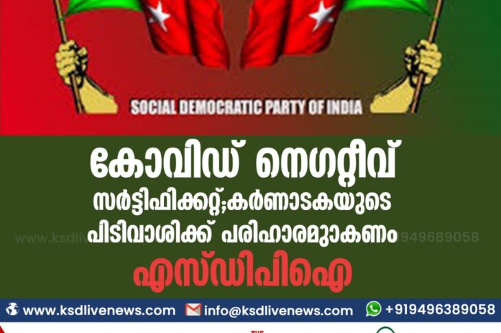 പ്രാദേശികം കോവിഡ് നെഗറ്റീവ്സർട്ടിഫിക്കറ്റ്;കർണാടകയുടെ പിടിവാശിക്ക് പരിഹാരമുണ്ടാകണം എസ്ഡിപിഐFebruary 22, 2021
