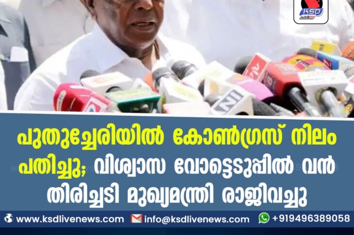 ദേശീയം പുതുച്ചേരിയിൽ കോൺഗ്രസ് നിലം പതിച്ചു ; വിശ്വാസ വോട്ടെടുപ്പിൽ വൻ തിരിച്ചടി മുഖ്യമന്ത്രി രാജിവച്ചുFebruary 22, 2021