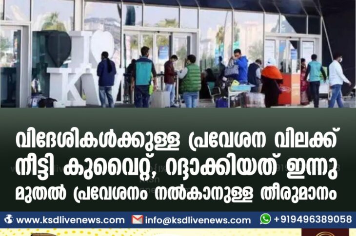 കേരളം വിദേശികൾക്കുള്ള പ്രവേശന വിലക്ക് നീട്ടി കുവൈറ്റ് , റദ്ദാക്കിയത് ഇന്നുമുതൽ പ്രവേശനം നൽകാനുള്ള തീരുമാനംFebruary 21, 2021