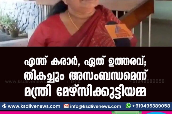 കേരളം എന്ത് കരാർ ? , ഏത് ഉത്തരവ് ? ; തികച്ചും അസംബന്ധമെന്ന് മന്ത്രി മേഴ്സിക്കുട്ടിയമ്മFebruary 19, 2021