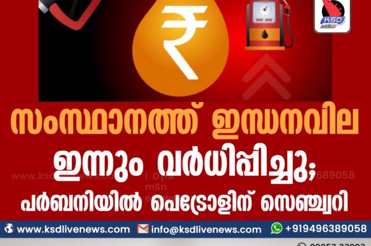 കേരളം സംസ്ഥാനത്ത് ഇന്ധനവില ഇന്നും വര്ധിപ്പിച്ചു; പര്ബനിയില് പെട്രോളിന് സെഞ്ച്വറിFebruary 15, 2021