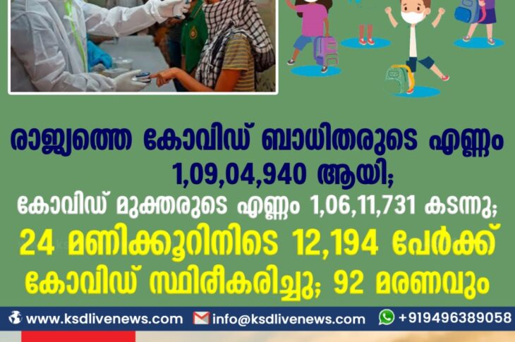 เดฆเตเดถเตเดฏเด เดฐเดพเดเตเดฏเดคเตเดคเต เดเตเดตเดฟเดกเต เดฌเดพเดงเดฟเดคเดฐเตเดเต เดเดฃเตเดฃเด 1,09,04,940 เดเดเดจเตเดจเต ; เดเตเดตเดฟเดกเต เดฎเตเดเตเดคเดฐเตเดเต เดเดฃเตเดฃเด 1,06,11,731 เดเดฏเดฟ;24 เดฎเดฃเดฟเดเตเดเตเดฑเดฟเดจเดฟเดเต 12,194 เดชเตเตผเดเตเดเต เดเตเดตเดฟเดกเต เดธเตเดฅเดฟเดฐเตเดเดฐเดฟเดเตเดเต ; 92 เดฎเดฐเดฃเดตเตเดFebruary 14, 2021