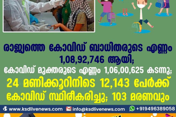 เดฆเตเดถเตเดฏเด เดฐเดพเดเตเดฏเดคเตเดคเต เดเตเดตเดฟเดกเต เดฌเดพเดงเดฟเดคเดฐเตเดเต เดเดฃเตเดฃเด 1,08,92,746 เดเดเดจเตเดจเต ; เดเตเดตเดฟเดกเต เดฎเตเดเตเดคเดฐเตเดเต เดเดฃเตเดฃเด 1,06,00,625 เดเดฏเดฟ;24 เดฎเดฃเดฟเดเตเดเตเดฑเดฟเดจเดฟเดเต 12,143 เดชเตเตผเดเตเดเต เดเตเดตเดฟเดกเต เดธเตเดฅเดฟเดฐเตเดเดฐเดฟเดเตเดเต ; 103 เดฎเดฐเดฃเดตเตเดFebruary 13, 2021