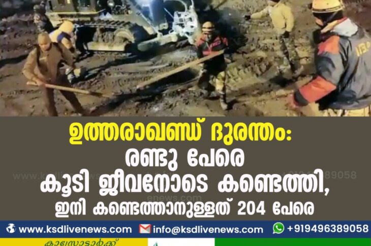ദേശീയം ഉത്തരാഖണ്ഡ് ദുരന്തം: രണ്ടു പേരെ കൂടി ജീവനോടെ കണ്ടെത്തി, ഇനി കണ്ടെത്താനുള്ളത് 204 പേരെFebruary 12, 2021