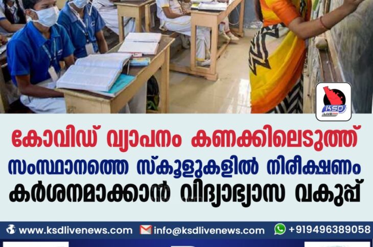 കേരളം കോവിഡ് വ്യാപനം കണക്കിലെടു ത്ത് സംസ്ഥാനത്തെ സ്കൂളുകളിൽ നിരീക്ഷണം കർശനമാക്കാൻ വിദ്യാഭ്യാസ വകുപ്പ്February 9, 2021
