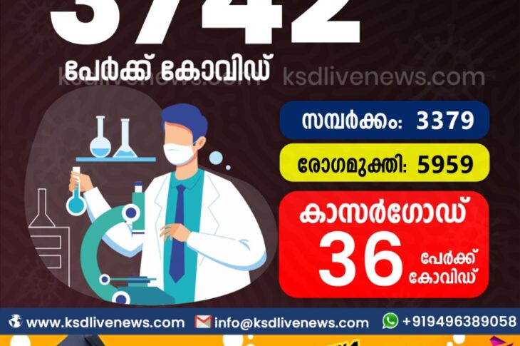 കേരളംകോവിഡ് 19 സംസ്ഥാനത്ത് ഇന്ന് 3742 പേർക്ക് കോവിഡ് സ്ഥിരീകരിച്ചു. സമ്പർക്കം വഴി 3379 പേർക്കും ; ആശ്വാസമായി 5959 പേർക്ക് രോഗ മുക്തിയും ; കാസർഗോഡ് ജില്ലയിൽ 36 പേർക്ക് പുതിയ കോവിഡ് കേസുകൾ ; മരണം 16February 8, 2021