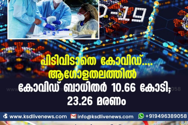 കോവിഡ് 19വിദേശം വിട്ടൊഴിയാതെ കോവിഡ്….ആഗോളതലത്തിൽ കോവിഡ് ബാധിതർ 10.66 കോടി; മരണസംഖ്യ 23.26 ലക്ഷം പിന്നിട്ടു………February 8, 2021