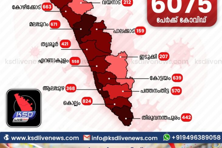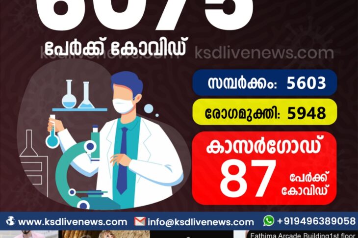 കേരളംകോവിഡ് 19 സംസ്ഥാനത്ത് ഇന്ന് 6075 പേർക്ക് കോവിഡ് സ്ഥിരീകരിച്ചു. സമ്പർക്കം വഴി 5603 പേർക്കും ; ആശ്വാസമായി 5948 പേർക്ക് രോഗ മുക്തിയും ; കാസർഗോഡ് ജില്ലയിൽ 87 പേർക്ക് പുതിയ കോവിഡ് കേസുകൾ ; മരണം 19February 7, 2021