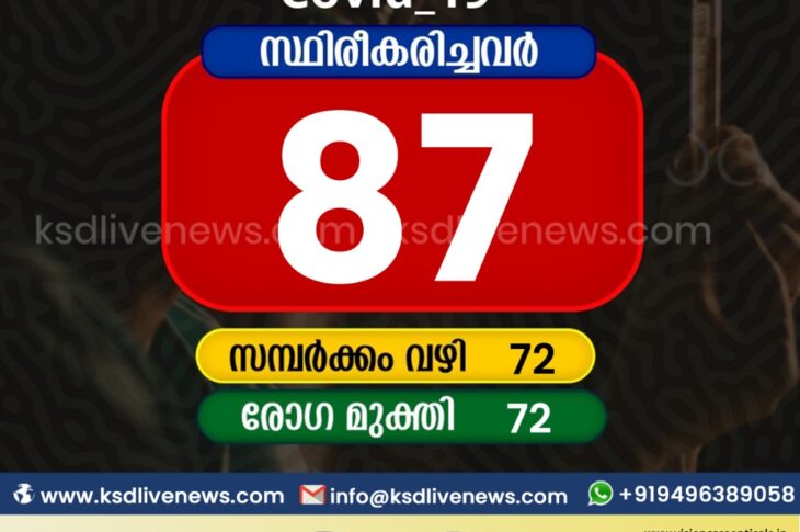 കാസർഗോഡ്കോവിഡ് 19 കാസർഗോഡ് ജില്ലയിൽ ഇന്ന് 87 പേർക്ക് കോവിഡ് സ്ഥിരീകരിച്ചു. സമ്പർക്കം വഴി 72 പേർക്കും. 72 പേർക്ക് രോഗമുക്തിFebruary 7, 2021