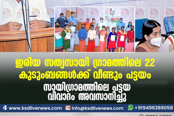 കോവിഡ് 19 ഇരിയ സത്യസായി ഗ്രാമത്തിലെ 22 കുടുംബങ്ങൾക്ക് വീണ്ടും പട്ടയം; സായിഗ്രാമത്തിലെ പട്ടയ വിവാദം അവസാനിJioച്ചുFebruary 7, 2021