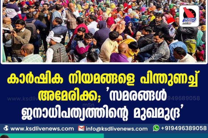 കാര്ഷിക നിയമങ്ങളെ പിന്തുണച്ച് അമേരിക്ക; ‘സമരങ്ങൾ ജനാധിപത്യത്തിന്റെ മുഖമുദ്ര’